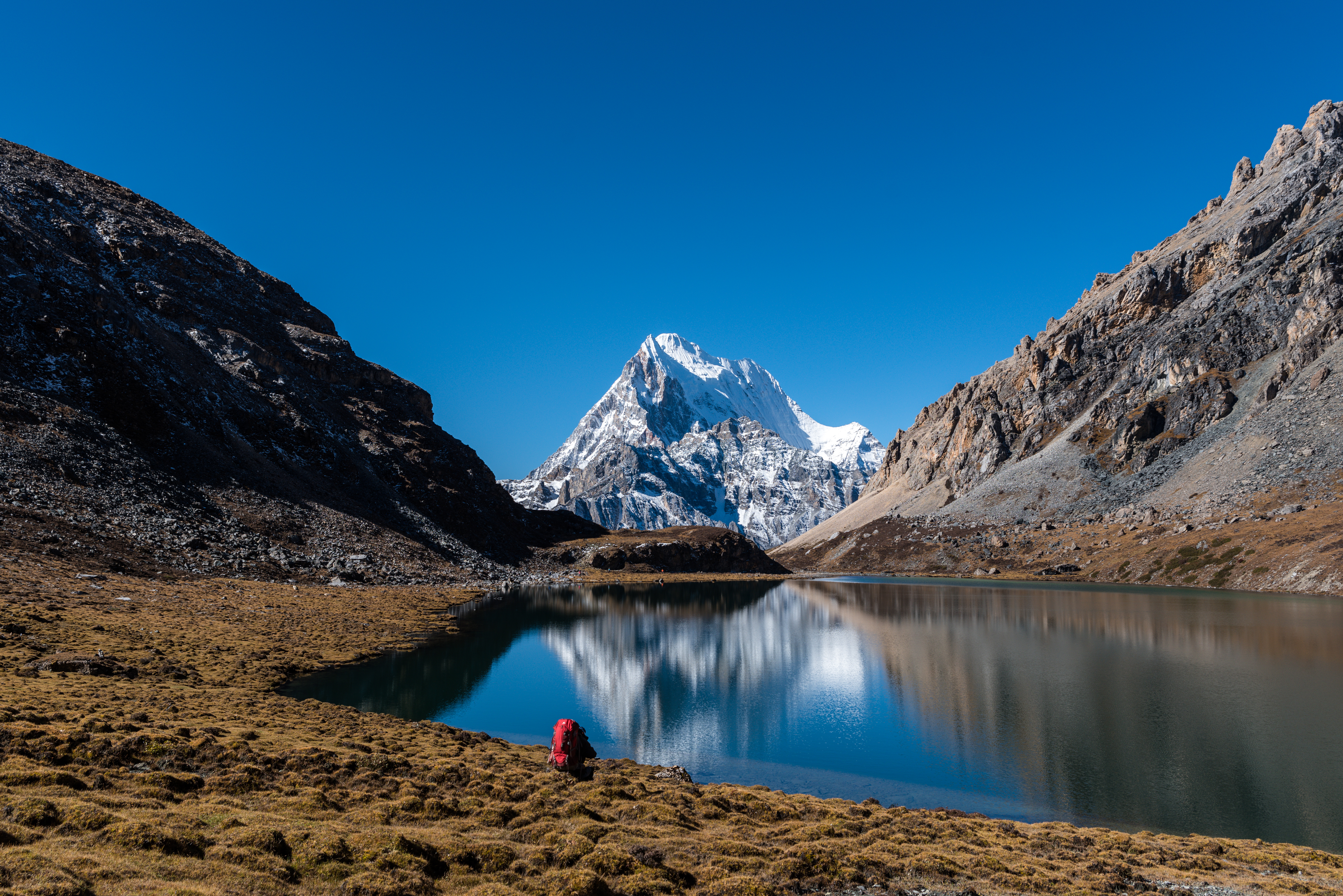 波拥措湖畔拍摄仙乃日倒影。