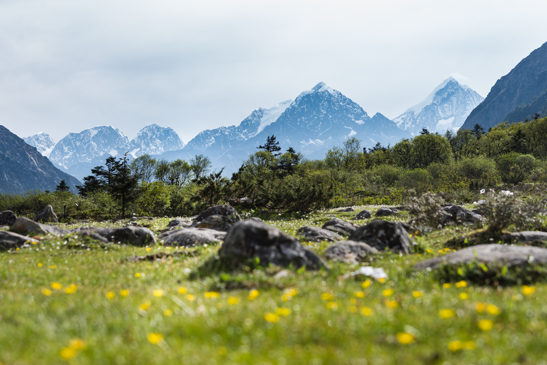 群山环绕,小花盛开