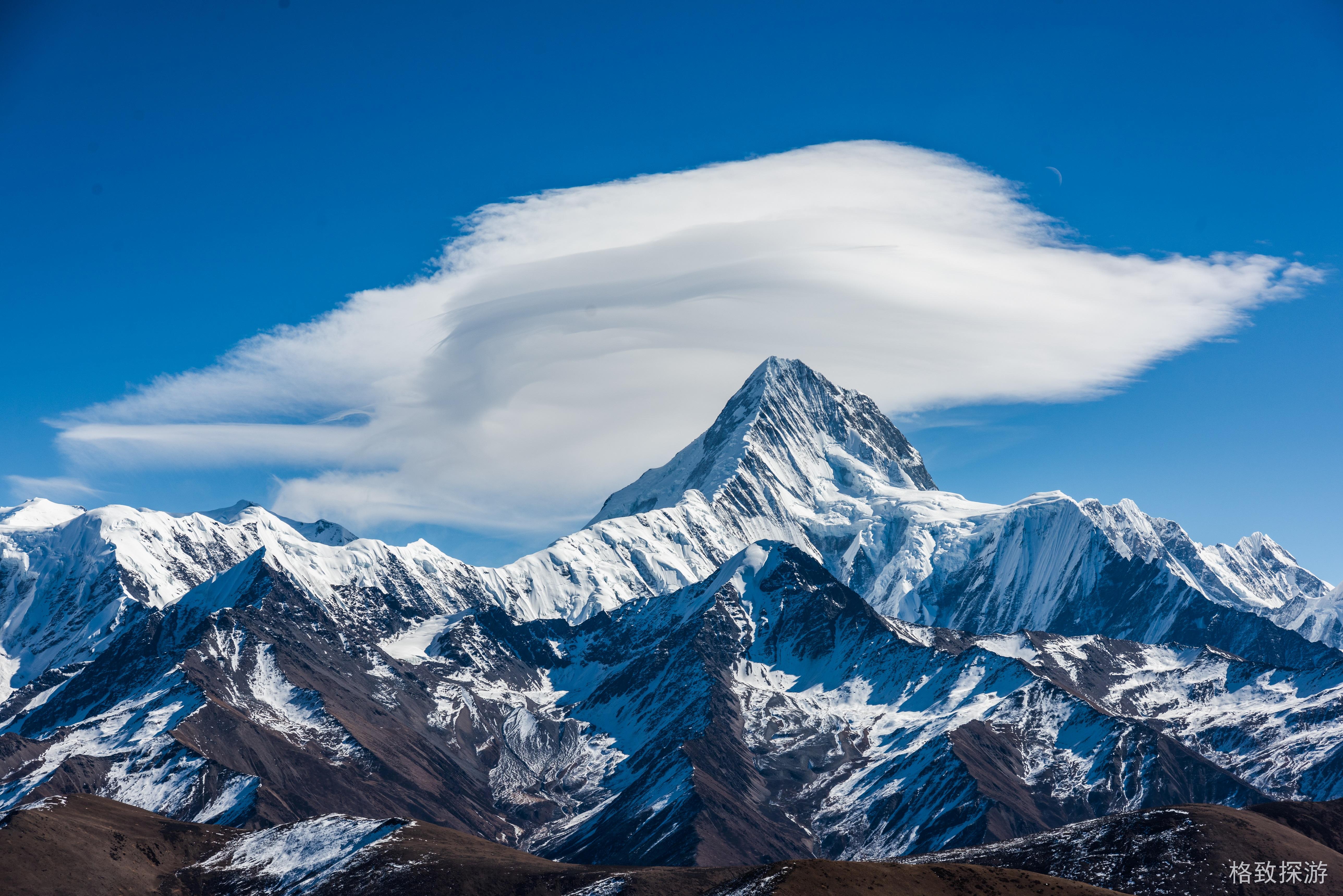 冷嘎措拍摄贡嘎帽子云