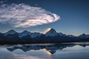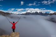 里索海拍摄贡嘎倒影和云海。