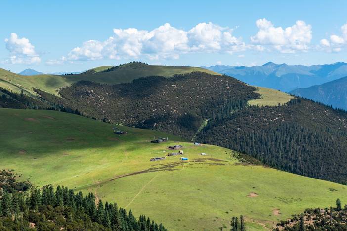 卡子拉山上的高山草甸和藏民村落。