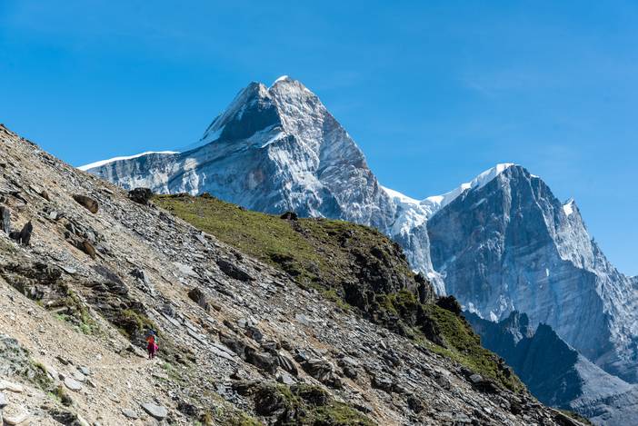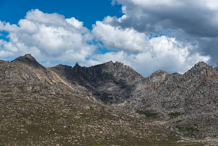 开始上坡,夏诺多吉的东北山脊如巨石长城。