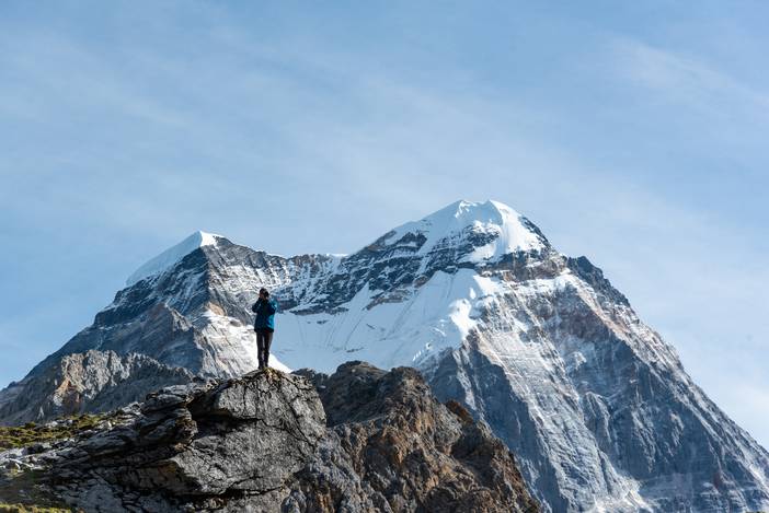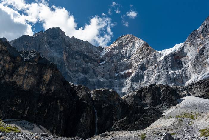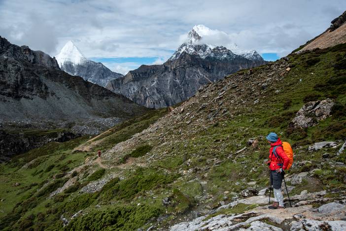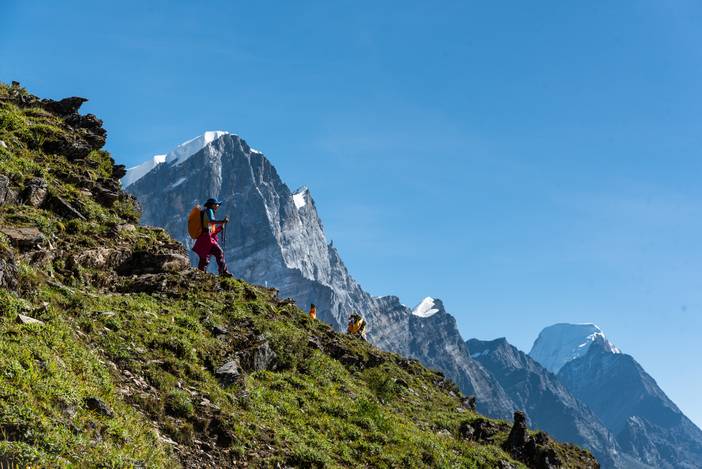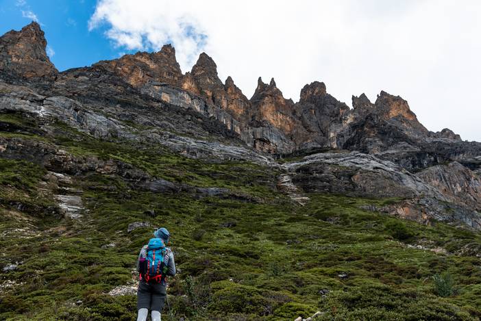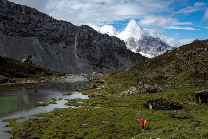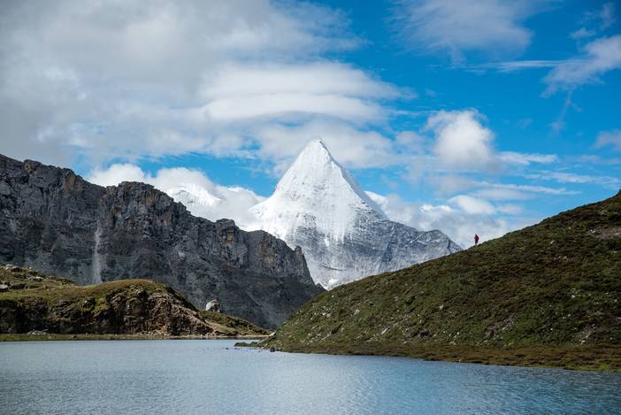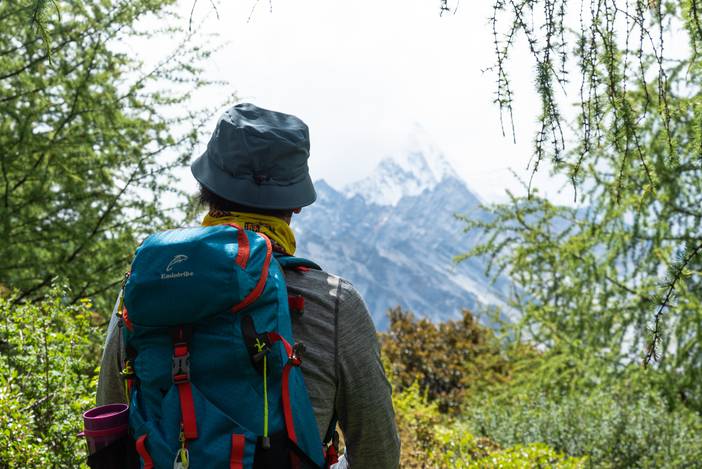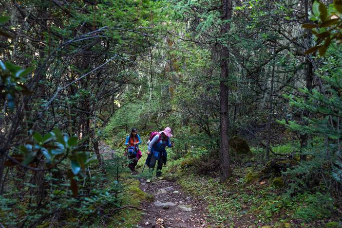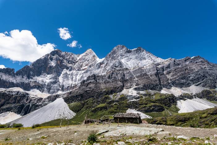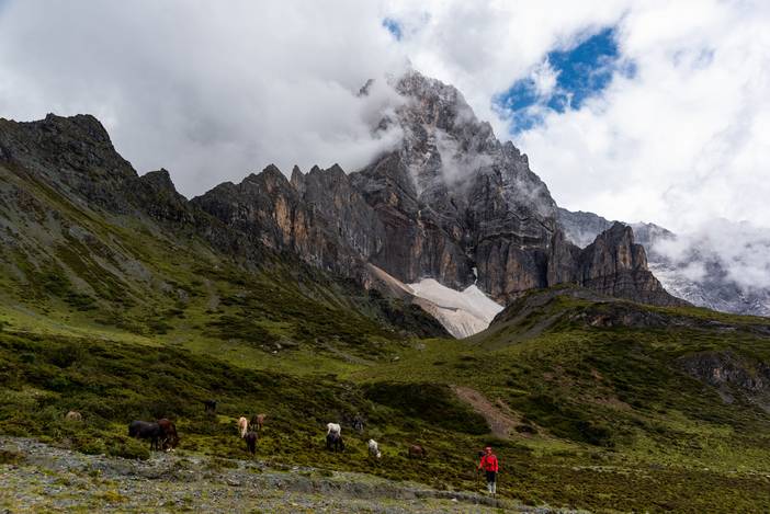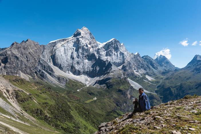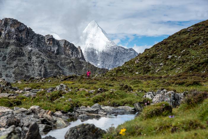 瓦蓝的天空下,仙乃日如一座宫殿立地而起。我们从仙乃日山脚下的冲古寺开始徒步,穿越丛林和高山灌丛,来到海拔4500米的巴玉营地。