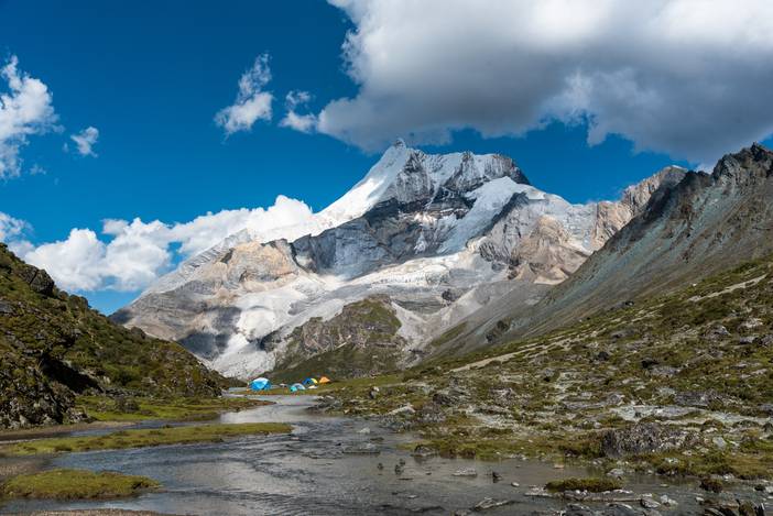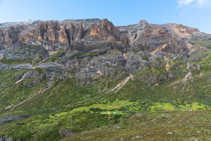 巴玉营地和对面的十六尊者峰。