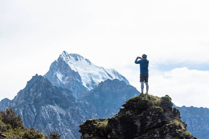 这一段也是风景高能,央迈勇高颜值的身形一直矗立在云天之际,形成最好的摄影背景。
