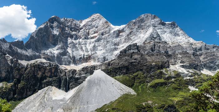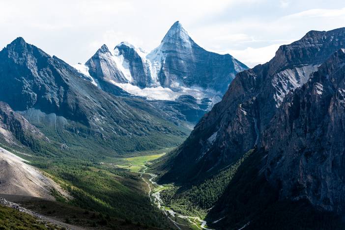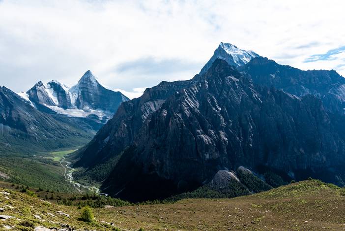 央迈勇神山,山下为亚丁景区的洛绒牛场。