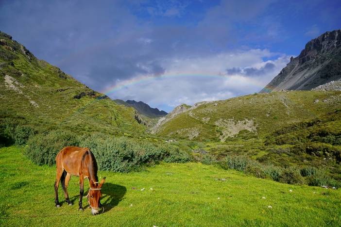 离开波拥措,来到高处牧场,仙乃日又从山后露头。