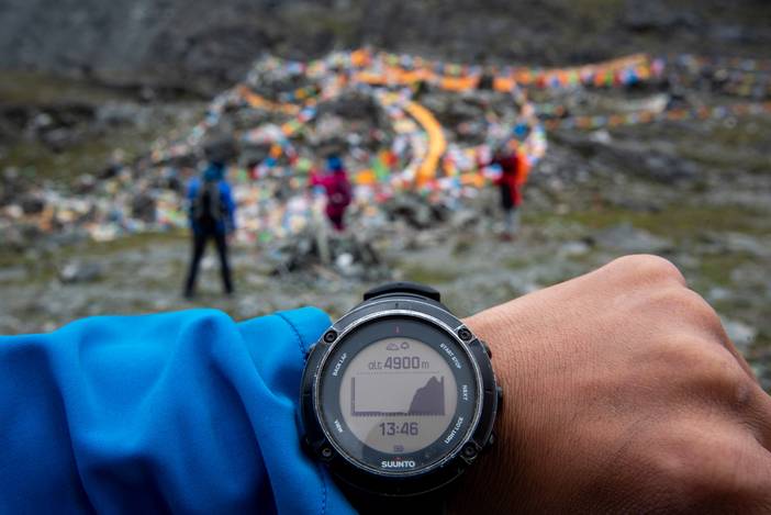 我的颂拓手表海拔高度恰好显示4900米。