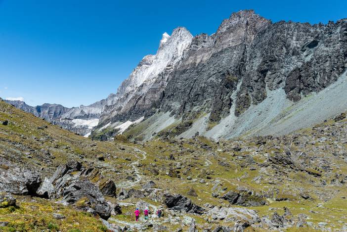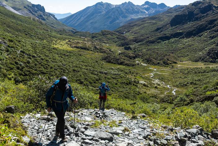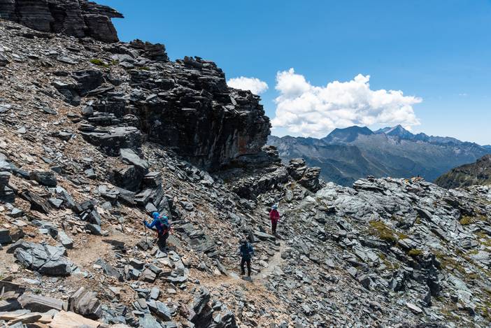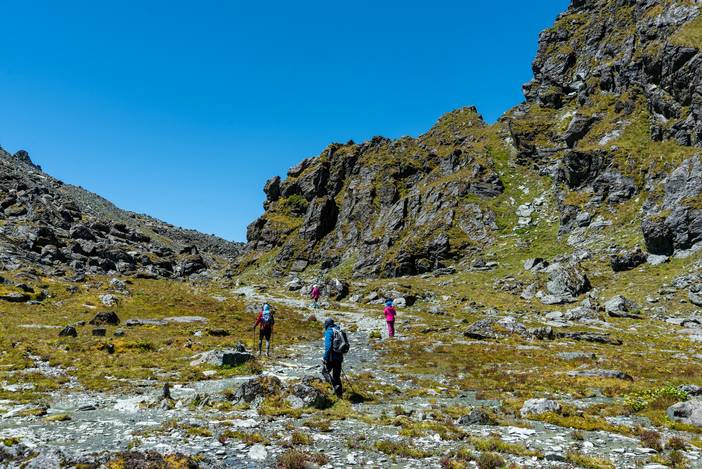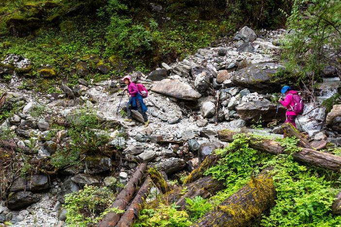 遍布乱石的徒步路线。