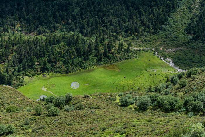 翻过垭口,下坡到万花池牛场。