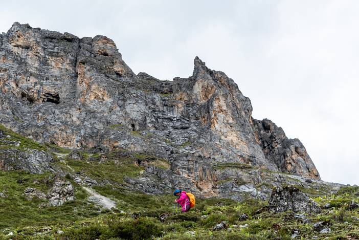 从波拥措到垭口这一段上坡,是一大挑战,而且微雨阴云也让这一段路行走的心情变得沉闷。下午到达嘎洛牛场,大家都纷纷选择了藏民的木屋。这也避免了夜雨侵袭。