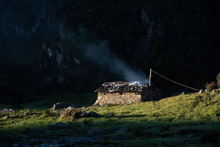 晨曦中的石屋,放牧的藏民正在做早餐。