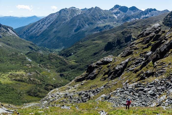 翻越杂巴拉垭口途中,回望美丽的山谷。