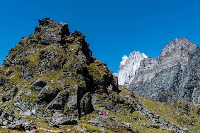 奋力爬上垭口后,队友海棠姐在休息。