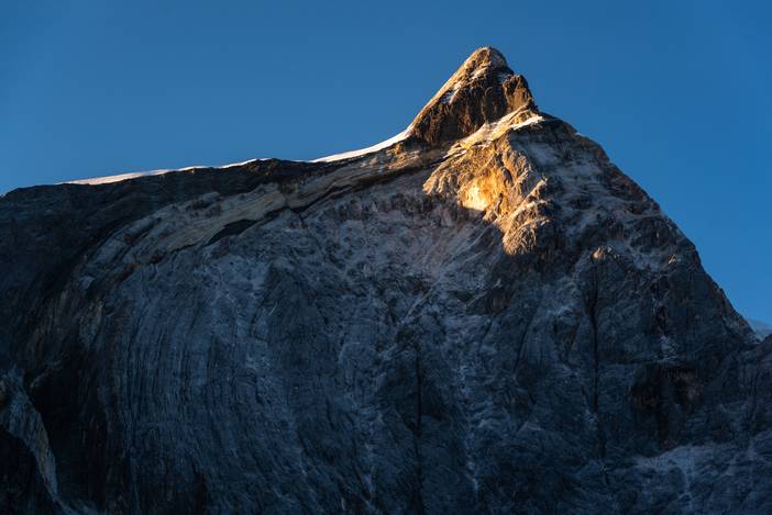 日出时分,夏诺多吉的日照金山。