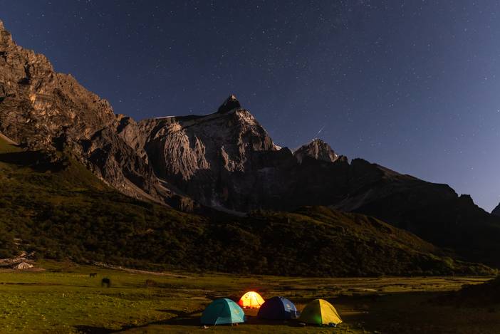 巴玉营地正对仙乃日神山和央迈勇神山。