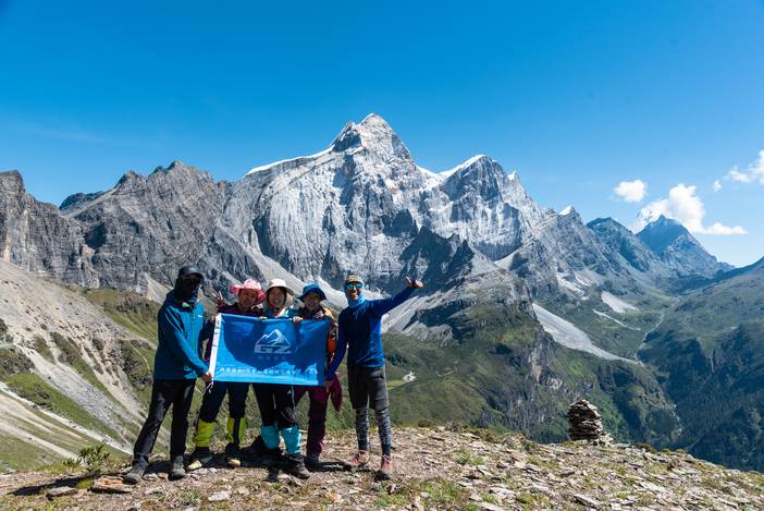 垭口合影留念,图中缺少了队友徐,他走的太快。