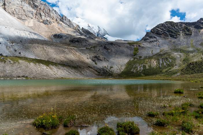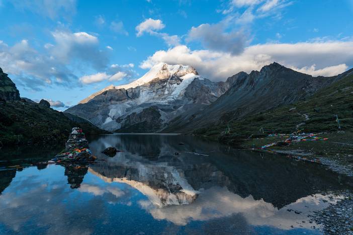 我们将营地驻扎在蛇湖湖尾,可以欣赏央迈勇西坡的倒影。