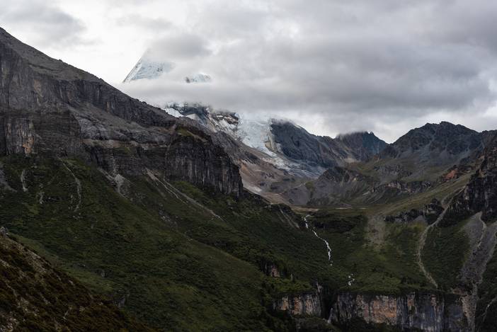 幸好降雨不一会停了,雪山也在风起云涌中时隐时现。