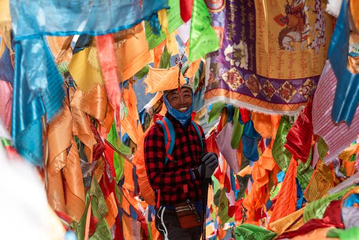 队友KK在经幡阵中留念。