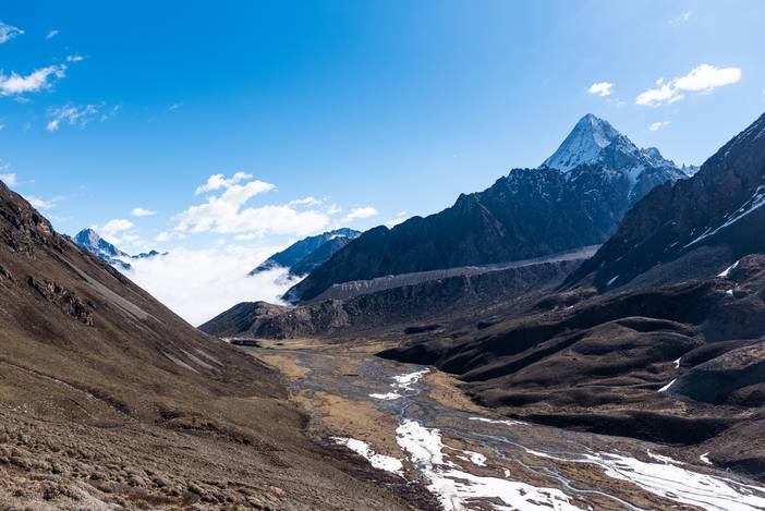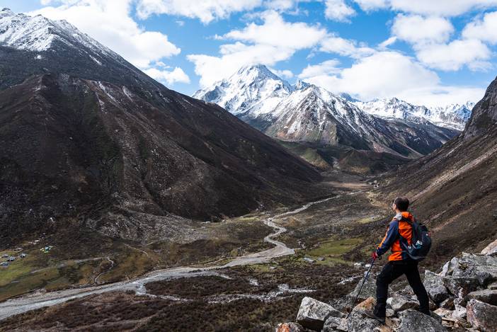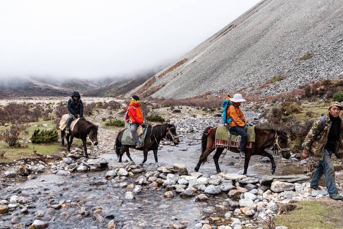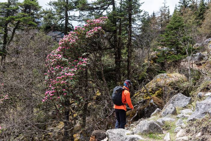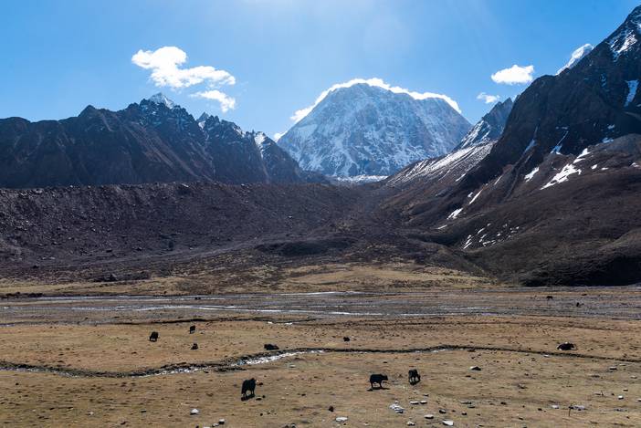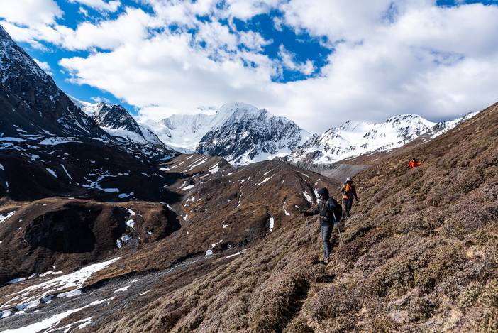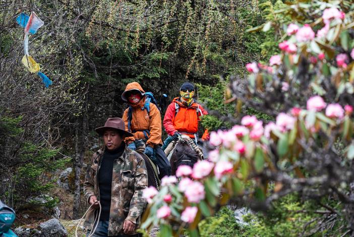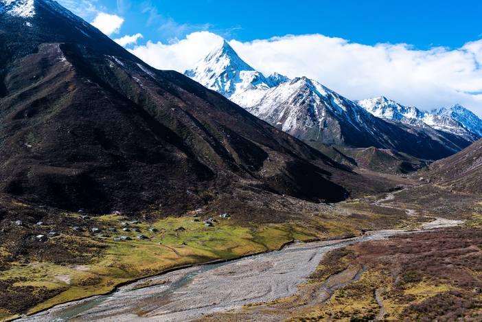 本日我们前往勒多漫因冰川附近的冰湖营地,营地海拔4500米,位于传统贡嘎徒步路线的上日乌且营地附近。