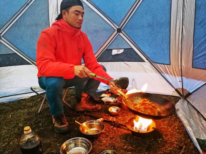(我们的后勤保障,让大家在户外,也能吃上美味可口的饭菜)