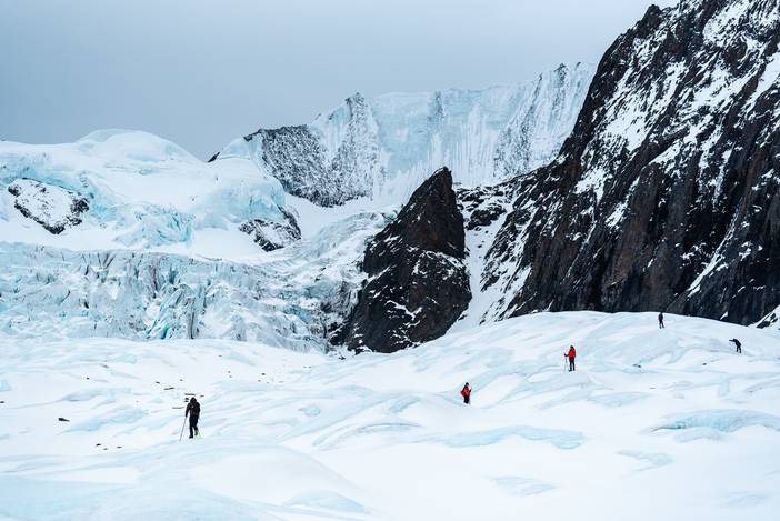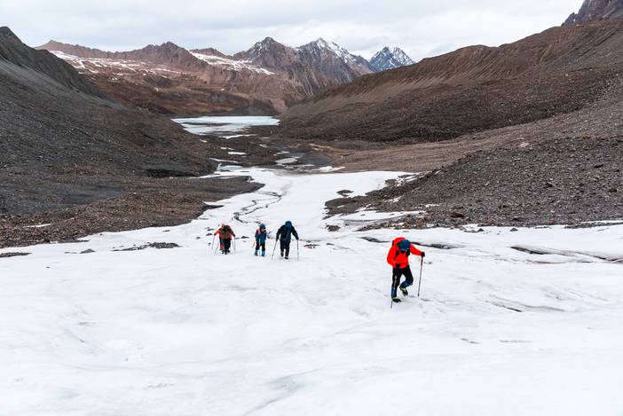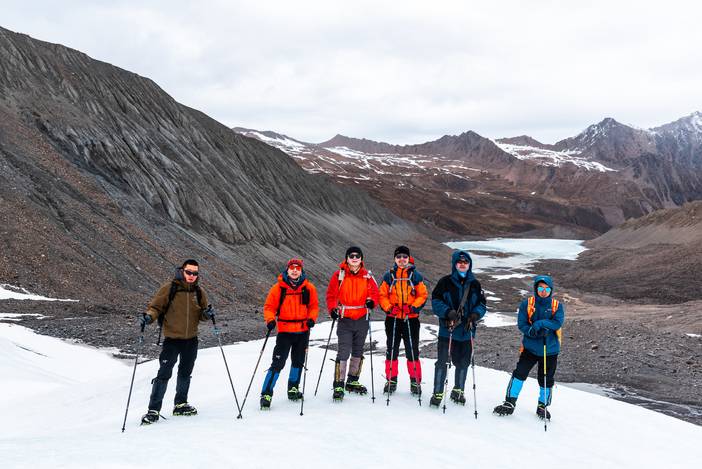2019年冰川探游的首发团有8位朋友跟我们同行,考虑冰川徒步活动的特殊性,我们安排了2位领队,善友和唐杰。善友是格致探游的联合创始人,也是冰川探游的策划者,唐杰也是多次领队,口碑很棒,更是擅长高原的野外烹饪。这次强强联合,只为让8位朋友可以收获一次愉快而难忘的高原徒步旅行。