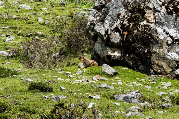 中途也是看到了土拨鼠欢快奔跑的身影,这里的土拨鼠有些怕人,所以只能远远的看着他们的身影,用长焦勉强拍了一张土拨鼠的照片啦。想起上木居那边的土拨鼠胆子够大,随便拍照,喂食,各种近距离接触,哈哈。