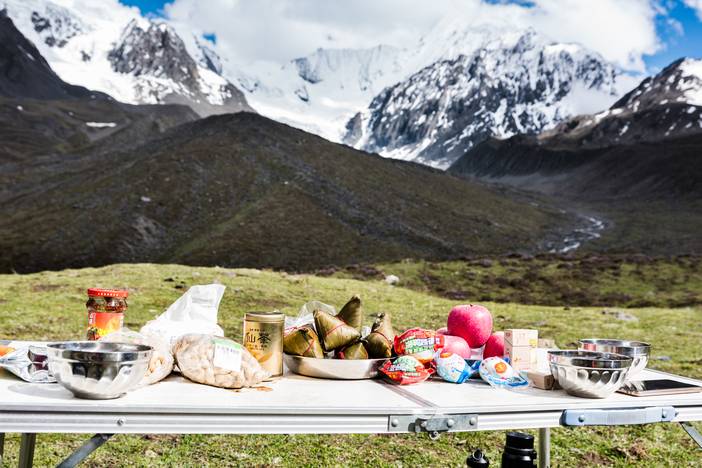 D5、起床一看,老天爷果然又给了我们一个好天气,哈哈。这一天是端午节了,把带上山的粽子煮了,拿出咸鸭蛋,183给大家煮了一锅番茄鸡蛋汤,新的一天从有仪式感的早餐开始,哈哈。