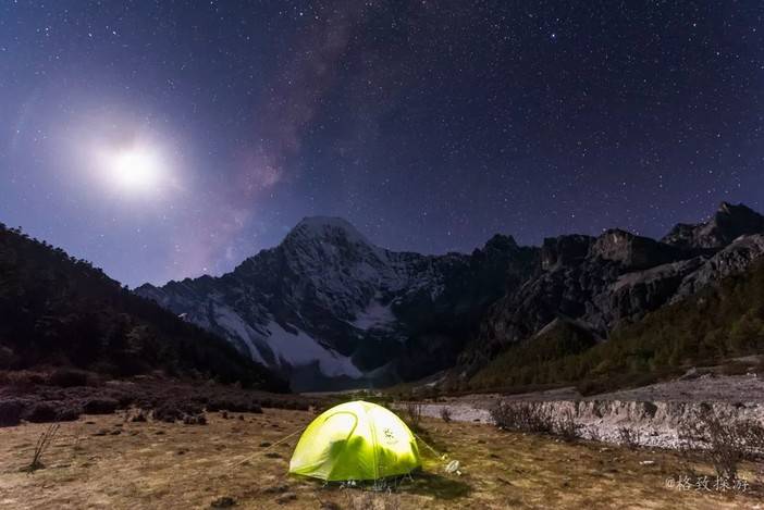 1、巴玉营地:洛克博士扎营之地,是藏民的高山牧场,可以拍摄央迈勇和仙乃日的日出金山。