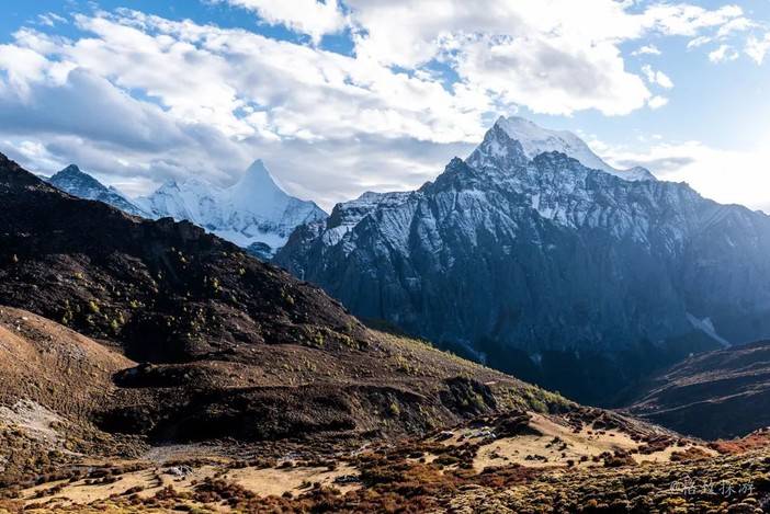 4、上贡嘎扎则牛场:夏诺多吉东南坡的高山牧场,距离主峰直线距离仅2.3公里,也是拍摄夏诺多吉的日出。