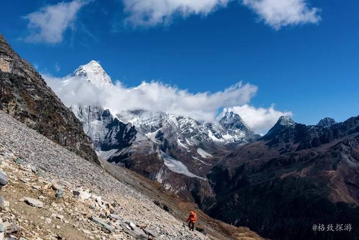 Day3、嘎洛牛场-贡嘎扎则牛场-上贡嘎扎则牛场,徒步11公里,上升330米,下降330米;上贡嘎扎则牛场海拔4400米,本日也可以在贡嘎扎则牛场扎营,看日出角度更好,不过后一天的徒步强度会非常大。