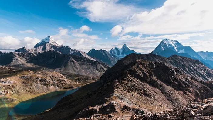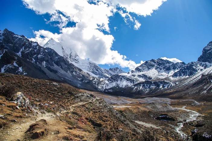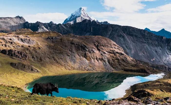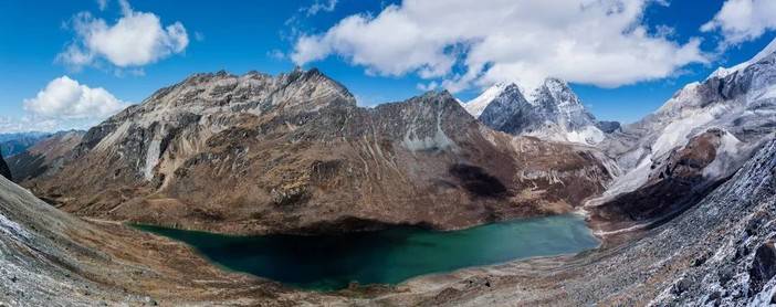 2、木里水洛乡嘟噜村出发,沿白水河进山,沿着夏诺多吉和央迈勇南坡徒步然后翻垭口到央迈勇西坡,途径蛇湖再翻越垭口到景区内的五色海和牛奶海,这是传统的洛克线的路线,在户外圈内享有盛名;