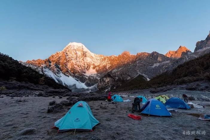 3、贡嘎扎则牛场:夏诺多吉东坡下的牧场,五星级营地,是拍摄夏诺多吉日出金山的绝佳位置。