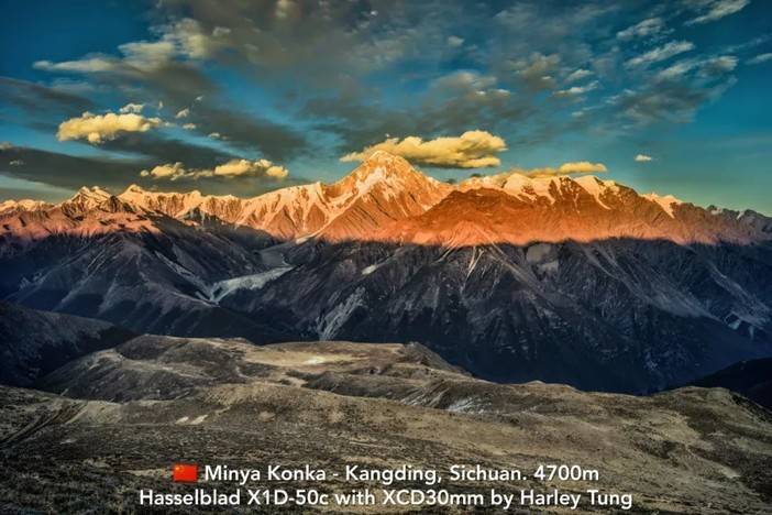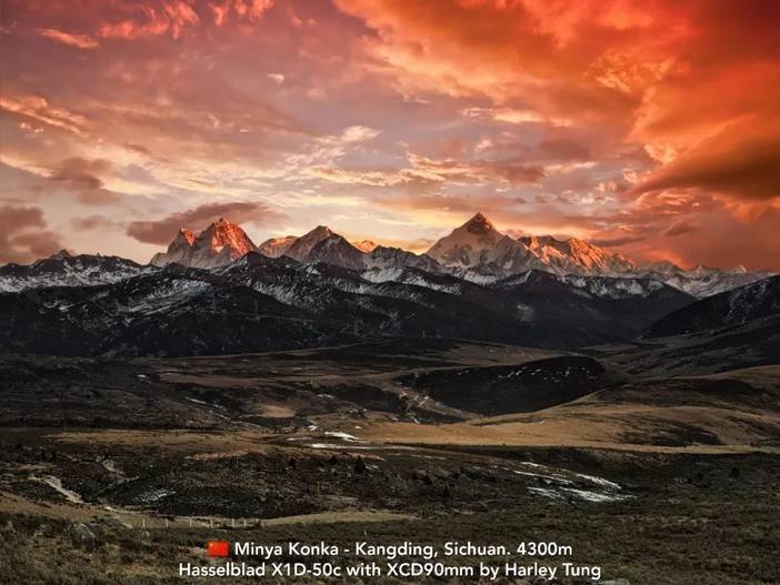 康定机场附近的斯丁措,是观赏贡嘎北坡的绝佳位置,日落时分的红霞仿佛焰火。