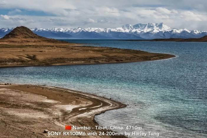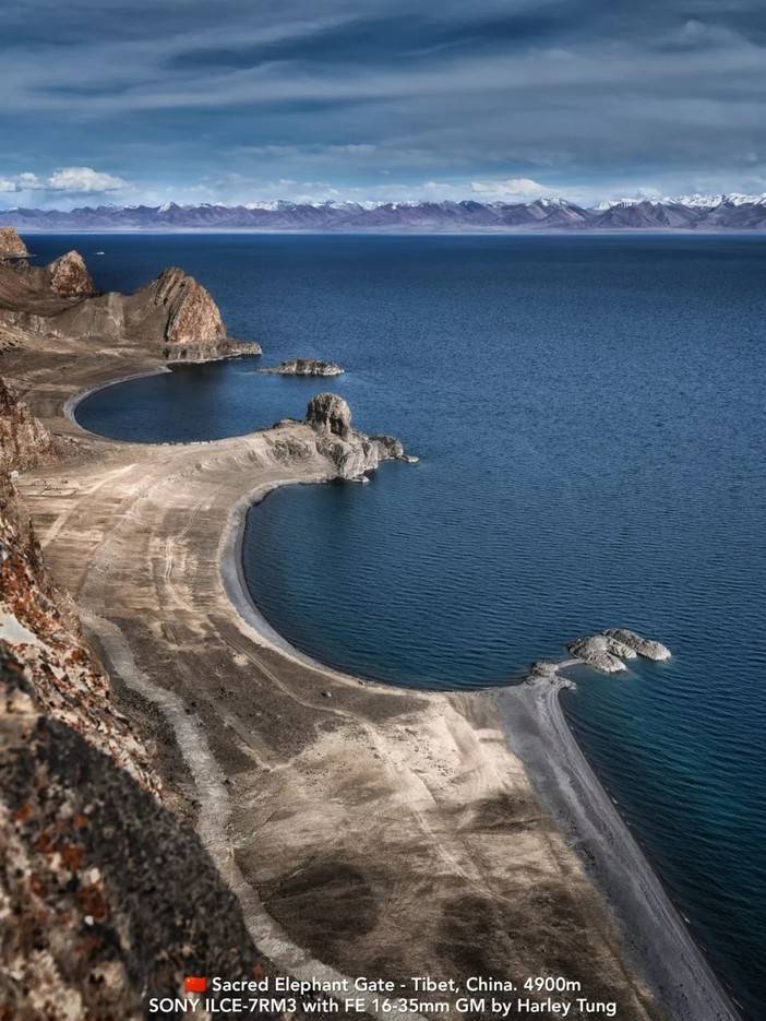 下图中形如大象的巨石即为圣象天门。此处的纳木错湖岸线也很美。