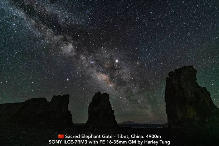 再一次拍摄璀璨的星河,图中的巨石共有三座,传说是为三生石,代表人的前世今生和来世。