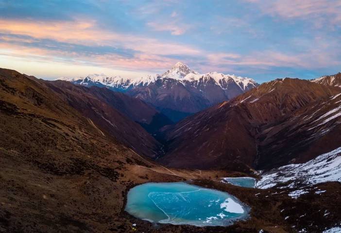 里索海双湖与贡嘎雪山
