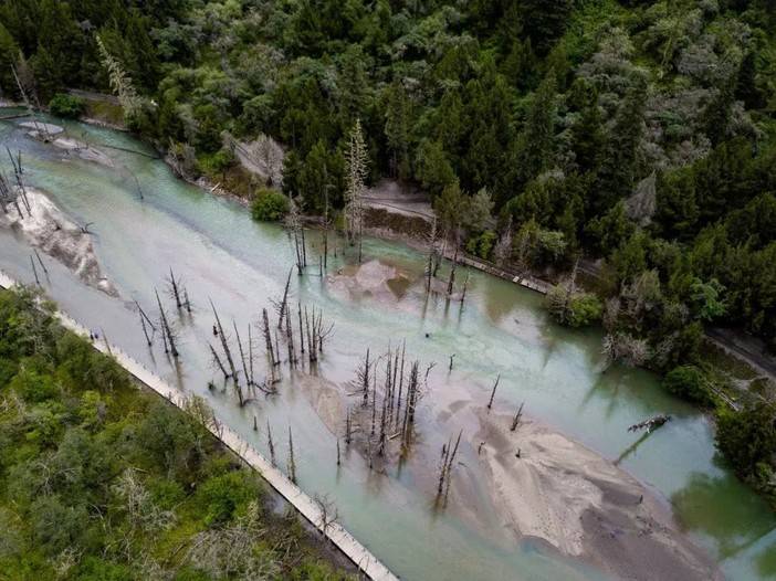 长坪沟内的枯树滩