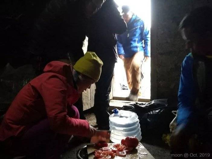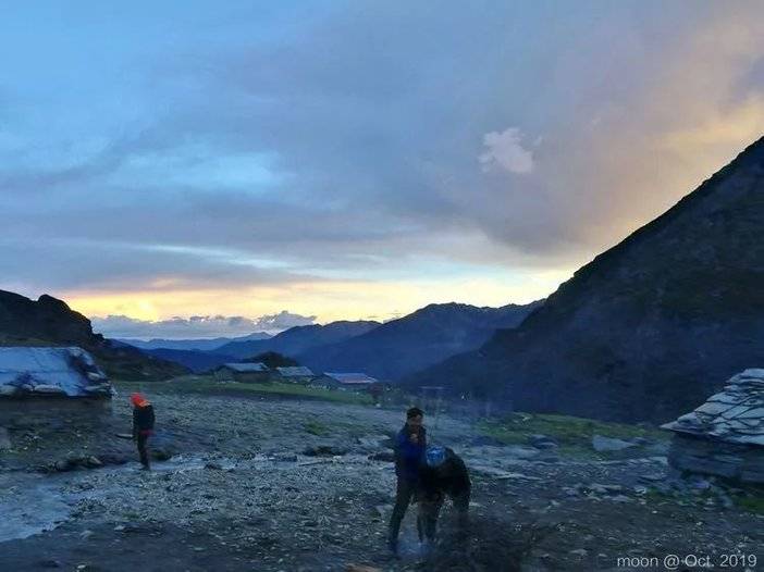 看到天色正好我想着到营地晒睡袋不由得加快了脚步,头痛脚无力的状态暂时消失。赶到嘎洛牛场,发现可以睡木屋不用搭帐,大喜。马上开启悠哉的傍晚好时光。