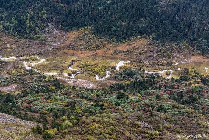 穿越数条山溪河流,神山夏诺多吉脚下,穿越原始丛林。