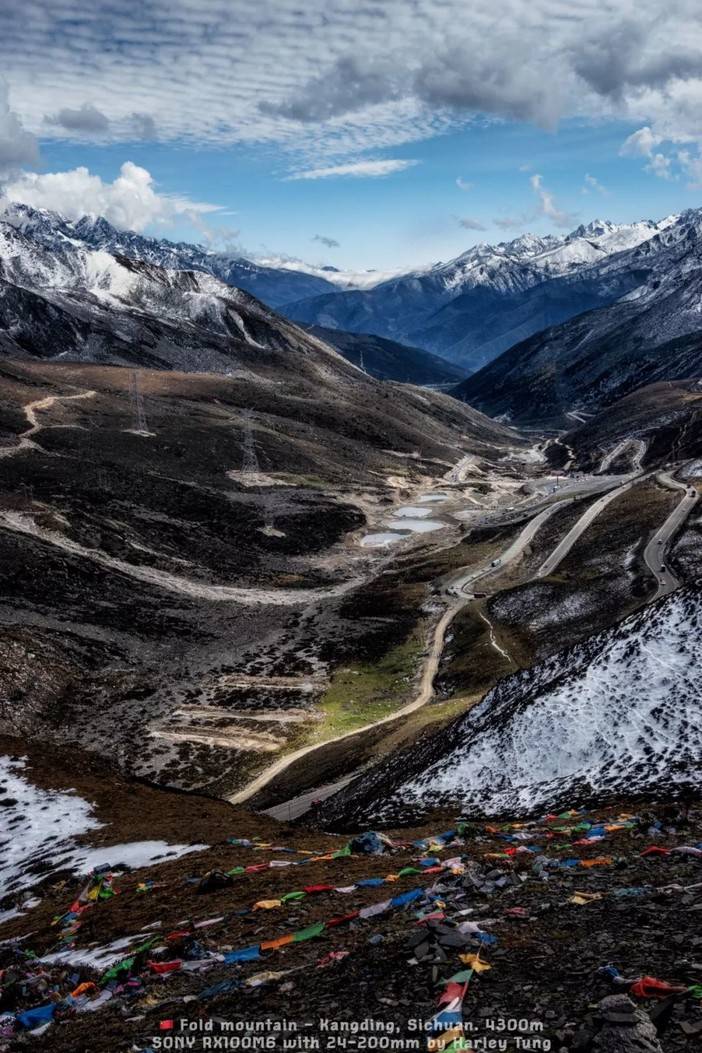 上图拍摄于10月20日,康藏门户折多山,G318国道在山间盘绕蜿蜒,而垭口的经幡在风中守望远方。