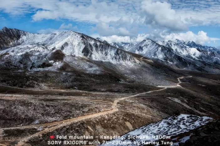 上图拍摄于与10月20日,雪后的折多山,半山腰的道路蜿蜒向前。