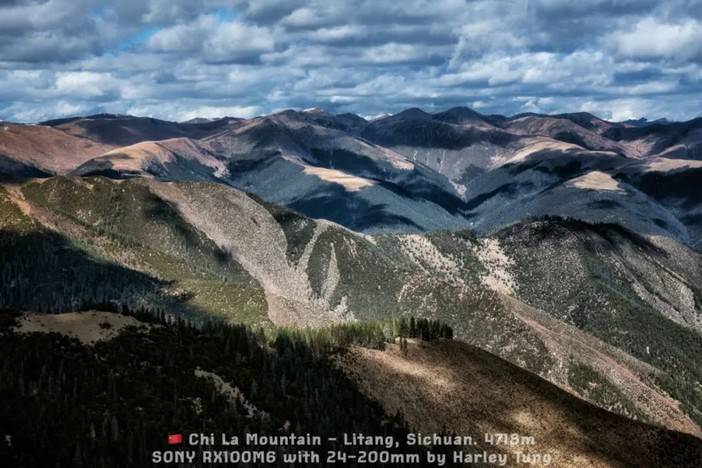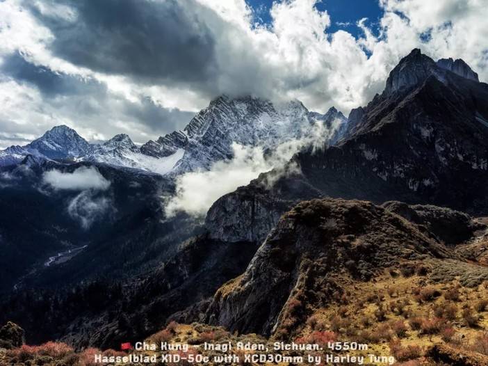 上图拍摄于10月27日,夏诺多吉东坡的察贡牛场,下午的风云变幻中,夏诺多吉高大的山体变幻无端。