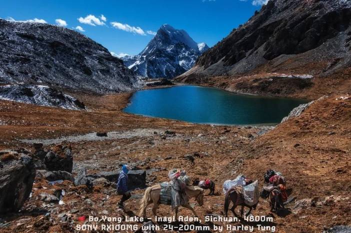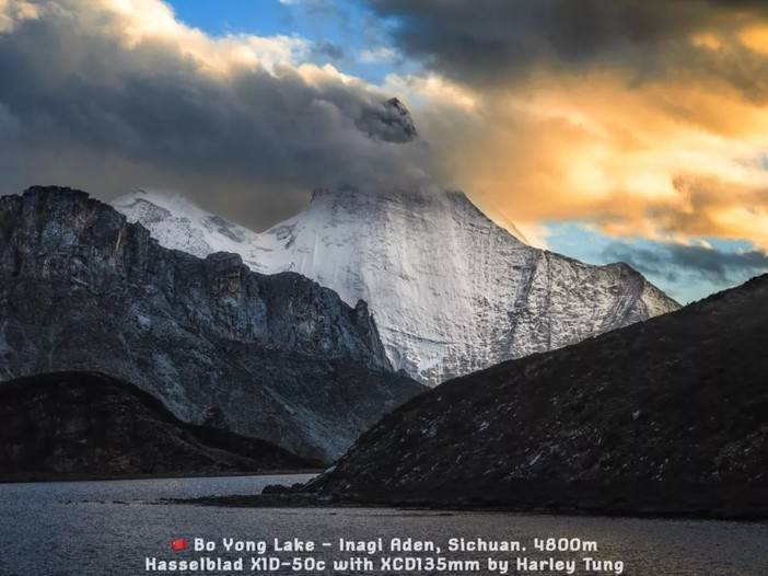 上图拍摄于10月28日下午,波拥措湖畔,位于波拥措西侧的仙乃日神山,下午本是逆光,不适合摄影创作,但是太阳将仙乃日正上方的一朵云打亮,创作出美妙的光影,守候在此的哈利,适时按下快门,记录下这一刻的恰如其分。