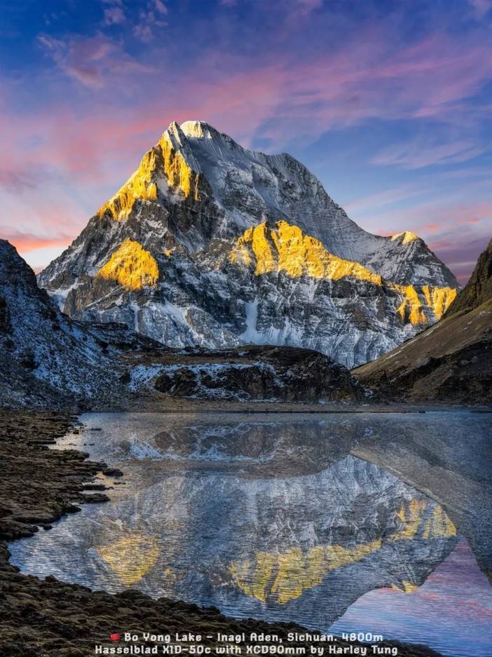 上图拍摄于10月23日,日出时分的波拥措,湖面如镜,完美映照出央迈勇神山的日照金山的水影。而山坡上的几匹闲适的马儿估计是看惯了云卷云舒,正沉浸在自己的世界中,一点都不理会这大自然的造化之美。