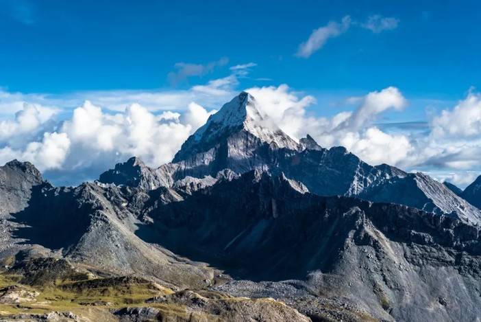 (翻过杂巴拉垭口后来到央迈勇东南坡,前方山顶为央迈勇卫峰)