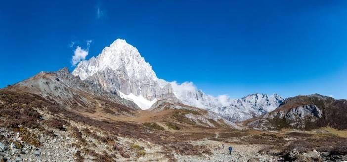 (徒步者在松多垭口,前方为仙乃日)