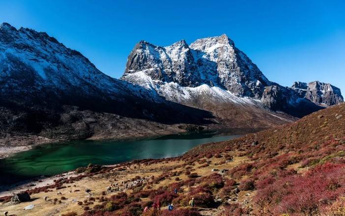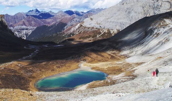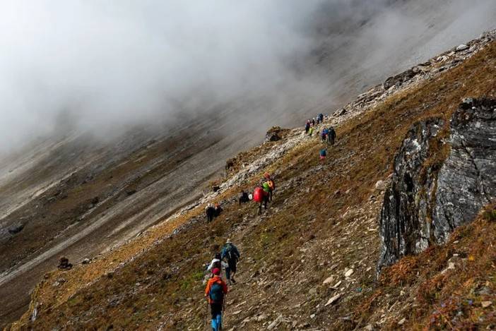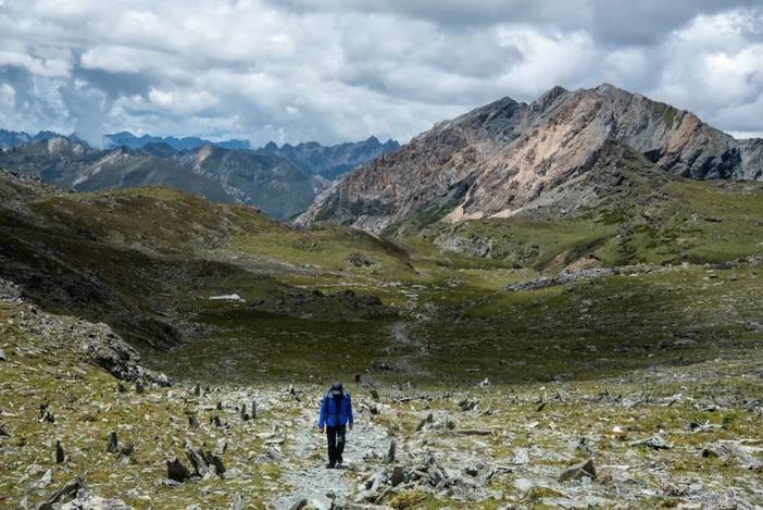(徒步者从蛇湖前往松多垭口)