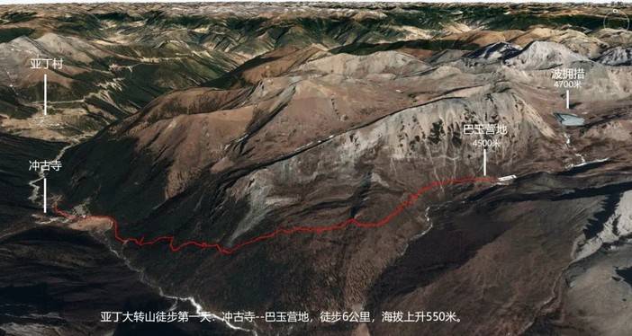 一般从冲古寺到巴玉营地的徒步时间约3-5小时,对于第一天的适应性徒步而言,较小的强度和体能消耗,更有利于高海拔的适应,降低高原反应对徒步者身体的影响。